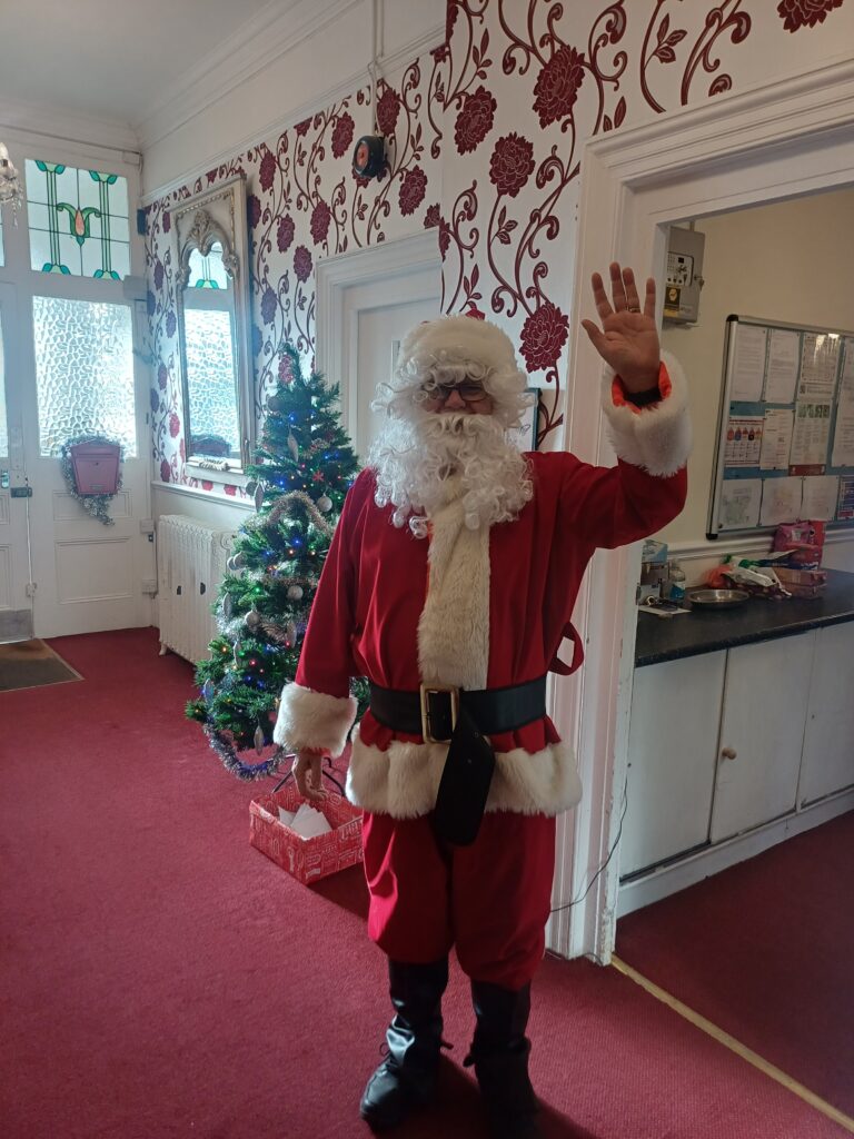 Residents and families came together to enjoy a traditional celebration complete with a live singer performing classic Christmas songs, creating a warm, nostalgic atmosphere. Santa Claus paid a visit, taking the time to meet residents and hand out gifts, making the day truly magical.